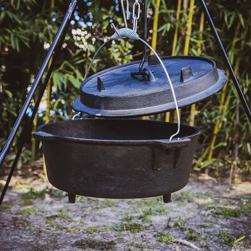 Set de Cocina al Fuego – Horno Holandés 11.4L + Trípode de Hierro + Guantes Resistentes al Calor